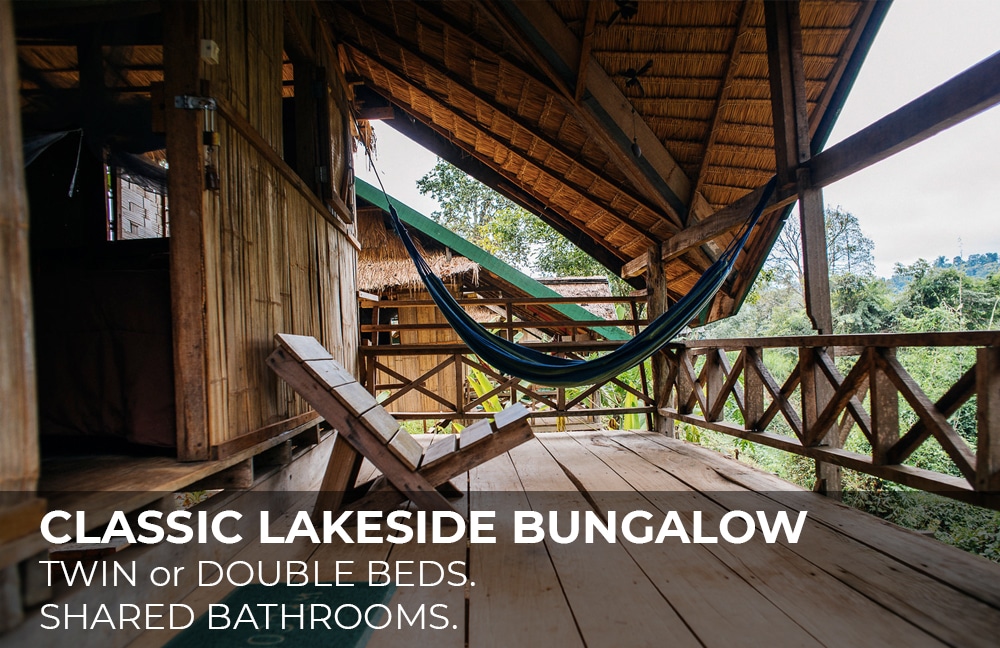 Experience luxurious modern wooden lodges, each fitted with one double bed and two twin beds. Enjoy exclusive infinity views of the serene Nam Tien lake from your private balcony, relishing seclusion from neighboring bungalows. Our deluxe cabins offer a refined retreat immersed in Laos’ natural beauty.