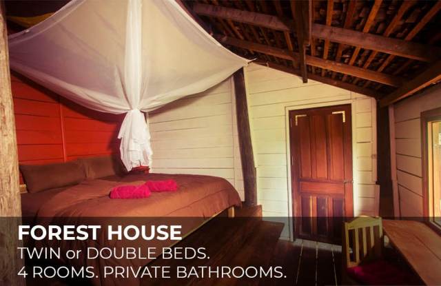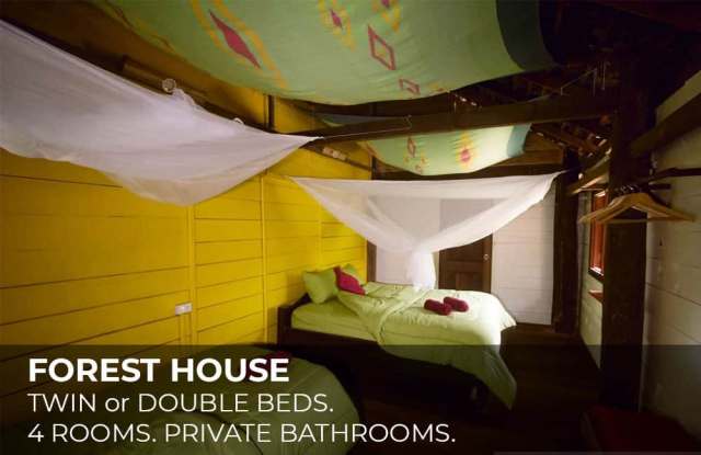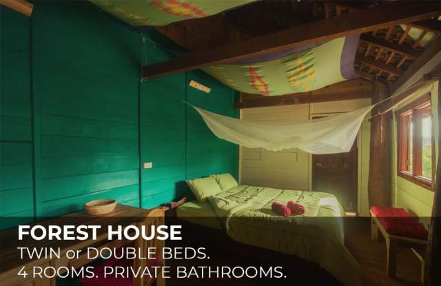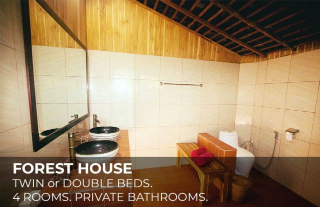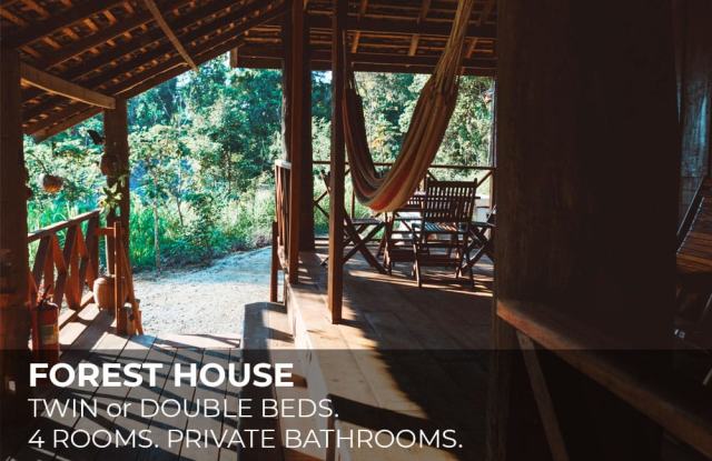 Tucked away amidst lush rainforest greenery, the house has 4 rooms to choose from. Two rooms feature a double bed and single bed, and the other two have one double bed. Enjoy a private balcony overlooking the landscape — ideal for families or groups seeking their own space
