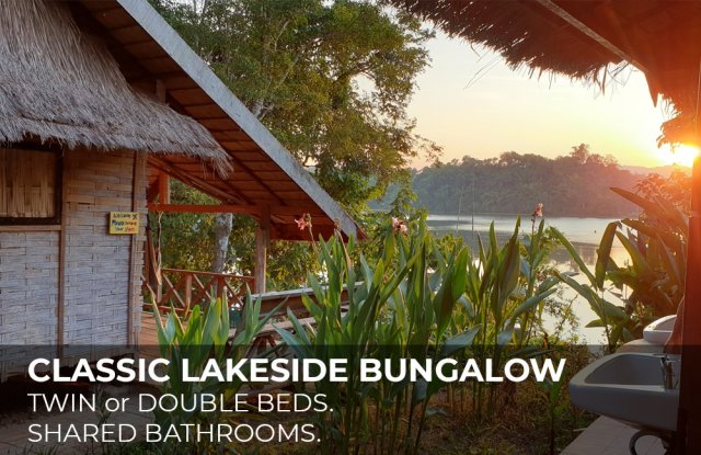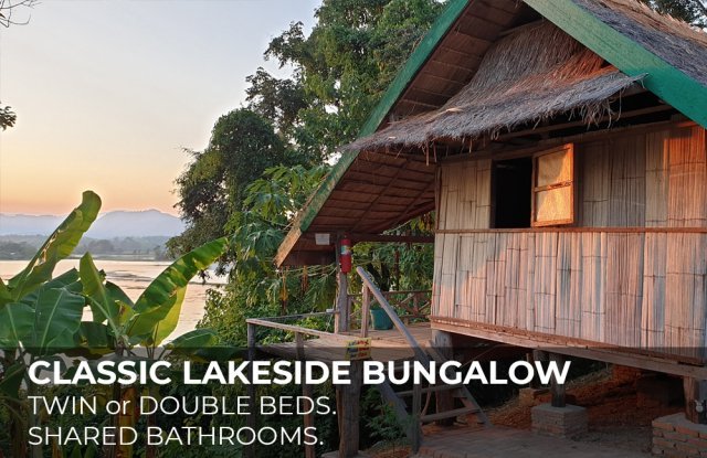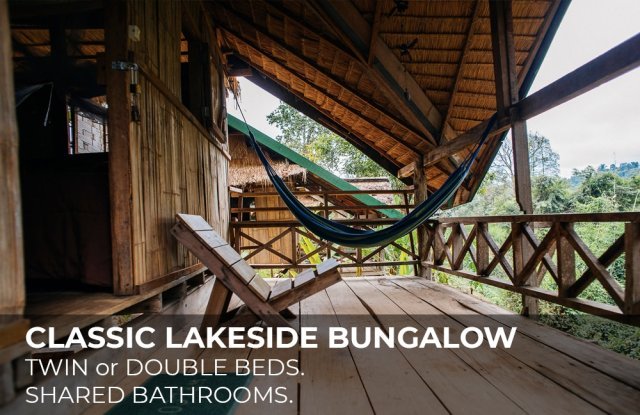 Experience luxurious modern wooden lodges, each fitted with one double bed and two twin beds. Enjoy exclusive infinity views of the serene Nam Tien lake from your private balcony, relishing seclusion from neighboring bungalows. Our deluxe cabins offer a refined retreat immersed in Laos’ natural beauty.