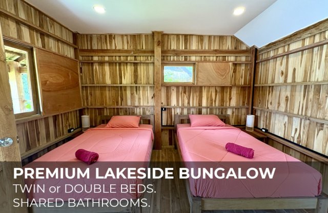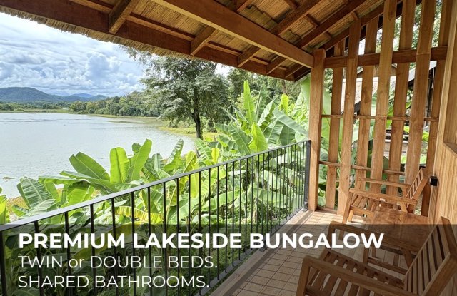 On the shores of Nam Tien Lake, our bungalows offer a restful, nature-focused stay with your choice of double or twin setup. Each features a private balcony—perfect for soaking up sunset over the water. New for 2025, our Premium bungalows add contemporary comforts while preserving the same close-to-nature character and uninterrupted lake views.