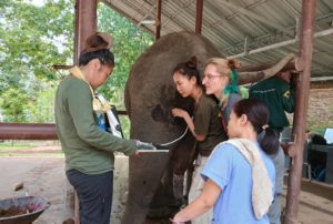 Nous sommes également heureux d’accueillir deux étudiants vétérinaires du Laos qui effectueront un stage en parasitologie et hématologie chez les éléphants.